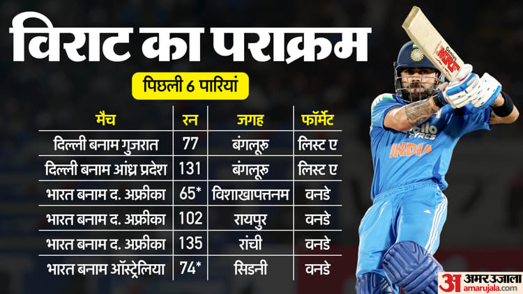 Virat Kohli: рдЫрд╣ рдкрд╛рд░реА рдореЗрдВ 584 рд░рди...146 рдХрд╛ рдФрд╕рдд...116.56 рдХрд╛ рд╕реНрдЯреНрд░рд╛рдЗрдХ рд░реЗрдЯ; рдЗрд╕ рдЖрдВрдХрдбрд╝реЗ рдХреЗ рдмрд╛рдж рдХреНрдпреЛрдВ рдЯреНрд░реЛрд▓ рд╣реБрдП рдЧрдВрднреАрд░? рд╕реНрд╡рдкреНрдирд┐рд▓ рд╢рд╢рд╛рдВрдХ Updated Fri, 26 Dec 2025 12:10 PM IST рд╡рд┐рд░рд╛рдЯ рдХреЛрд╣рд▓реА рдХреА рдкрд┐рдЫрд▓реА рдЫрд╣ 50 рдУрд╡рд░ рдкрд╛рд░рд┐рдпреЛрдВ рдореЗрдВ 584 рд░рди, 146 рдХрд╛ рдФрд╕рдд рдФрд░ 116.56 рдХрд╛ рд╕реНрдЯреНрд░рд╛рдЗрдХ рд░реЗрдЯ рджрд░реНрдЬ рдХрд┐рдпрд╛ рдЧрдпрд╛ рд╣реИ, рдЬрд┐рд╕рдореЗрдВ рдЧреБрдЬрд░рд╛рдд рдХреЗ рдЦрд┐рд▓рд╛рдл 77 рд░рди рдХреА рдкрд╛рд░реА рднреА рд╢рд╛рдорд┐рд▓ рд╣реИред рдЗрди рд╢рд╛рдирджрд╛рд░ рдЖрдВрдХрдбрд╝реЛрдВ рдХреЗ рд╕рд╛рдордиреЗ рдЖрдиреЗ рдХреЗ рдмрд╛рдж рд╕реЛрд╢рд▓ рдореАрдбрд┐рдпрд╛ рдкрд░ рдЧреМрддрдо рдЧрдВрднреАрд░ рдХреЛ рд▓реЗрдХрд░ рдмрд╣рд╕ рдФрд░ рдЯреНрд░реЛрд▓рд┐рдВрдЧ рддреЗрдЬ рд╣реЛ рдЧрдИред рд╡рд┐рд░рд╛рдЯ рдиреЗ рдЕрдкрдиреЗ рдкреНрд░рджрд░реНрд╢рди рд╕реЗ рдПрдХ рдмрд╛рд░ рдлрд┐рд░ рд╕рд╛рдмрд┐рдд рдХрд░ рджрд┐рдпрд╛ рдХрд┐ рд╡рд╣ 50 рдУрд╡рд░ рдХреНрд░рд┐рдХреЗрдЯ рдХреЗ рд╕рдмрд╕реЗ рдмрдбрд╝реЗ рдмрд▓реНрд▓реЗрдмрд╛рдЬрд╝реЛрдВ рдореЗрдВ рдХреНрдпреЛрдВ рдЧрд┐рдиреЗ рдЬрд╛рддреЗ рд╣реИрдВред рд╡рд┐рд╕реНрддрд╛рд░ рдЧреБрдЬрд░рд╛рдд рдХреЗ рдЦрд┐рд▓рд╛рдл 77 рд░рди рдХреА рдЕрд╣рдо рдкрд╛рд░реА рдмрдВрдЧрд▓реВрд░реВ рд╕реНрдерд┐рдд рдмреАрд╕реАрд╕реАрдЖрдИ рд╕реЗрдВрдЯрд░ рдСрдл рдПрдХреНрд╕реАрд▓реЗрдВрд╕ рдореЗрдВ рдЧреБрдЬрд░рд╛рдд рдХреЗ рдЦрд┐рд▓рд╛рдл рдЦреЗрд▓реЗ рдЧрдП рдореБрдХрд╛рдмрд▓реЗ рдореЗрдВ рд╡рд┐рд░рд╛рдЯ рдХреЛрд╣рд▓реА рдиреЗ 61 рдЧреЗрдВрджреЛрдВ рдкрд░ 77 рд░рди рдмрдирд╛рдПред рдЗрд╕ рдкрд╛рд░реА рдореЗрдВ рдЙрдиреНрд╣реЛрдВрдиреЗ 13 рдЪреМрдХреЗ рдФрд░ рдПрдХ рдЫрдХреНрдХрд╛ рд▓рдЧрд╛рдпрд╛ред рд╣рд╛рд▓рд╛рдВрдХрд┐ рд╡рд╣ рд╢рддрдХ рд╕реЗ рдЪреВрдХ рдЧрдП, рд▓реЗрдХрд┐рди рд╢реБрд░реБрдЖрддреА рдЖрдХреНрд░рд╛рдордХ рдЕрдВрджрд╛рдЬ рдФрд░ рдмрд╛рдж рдореЗрдВ рдкрд╛рд░реА рдХреЛ рд╕рдВрднрд╛рд▓рдиреЗ рдХреА рднреВрдорд┐рдХрд╛ рдиреЗ рдПрдХ рдмрд╛рд░ рдлрд┐рд░ рдЙрдирдХреЗ рдХреНрд░рд┐рдХреЗрдЯрд┐рдВрдЧ рдорд┐рдЬрд╛рдЬ рдХреЛ рджрд░реНрд╢рд╛рдпрд╛ред рдЗрд╕рд╕реЗ рдкрд╣рд▓реЗ рд╡рд┐рд░рд╛рдЯ рд╡рд┐рдЬрдп рд╣рдЬрд╛рд░реЗ рдЯреНрд░реЙрдлреА рдХреЗ рдкрд╣рд▓реЗ рдореИрдЪ рдореЗрдВ рдЖрдВрдзреНрд░ рдкреНрд░рджреЗрд╢ рдХреЗ рдЦрд┐рд▓рд╛рдл 131 рд░рди рдХреА рдореИрдЪ рдЬрд┐рддрд╛рдК рдкрд╛рд░реА рдЦреЗрд▓ рдЪреБрдХреЗ рдереЗ, рдЬрд┐рд╕рдиреЗ рдШрд░реЗрд▓реВ рдХреНрд░рд┐рдХреЗрдЯ рдореЗрдВ рдЙрдирдХреА рд╡рд╛рдкрд╕реА рдХреЛ рдпрд╛рджрдЧрд╛рд░ рдмрдирд╛ рджрд┐рдпрд╛ред рдкрд┐рдЫрд▓реА рдЫрд╣ рдкрд╛рд░рд┐рдпреЛрдВ рдХрд╛ рдкреВрд░рд╛ рд▓реЗрдЦрд╛-рдЬреЛрдЦрд╛ рд╡рд┐рд░рд╛рдЯ рдХреЛрд╣рд▓реА рдХреА рд╣рд╛рд▓рд┐рдпрд╛ рдЫрд╣ рдкрд╛рд░рд┐рдпреЛрдВ рдкрд░ рдирдЬрд░ рдбрд╛рд▓реЗрдВ рддреЛ рдЗрд╕рдореЗрдВ рдЧреБрдЬрд░рд╛рдд рдФрд░ рдЖрдВрдзреНрд░ рдкреНрд░рджреЗрд╢ рдХреЗ рдЦрд┐рд▓рд╛рдл рдореИрдЪ рд╕реЗ рдкрд╣рд▓реЗ, рджрдХреНрд╖рд┐рдг рдЕрдлреНрд░реАрдХрд╛ рдХреЗ рдЦрд┐рд▓рд╛рдл рд╡рдирдбреЗ рд╕реАрд░реАрдЬ рдореЗрдВ 135, 1