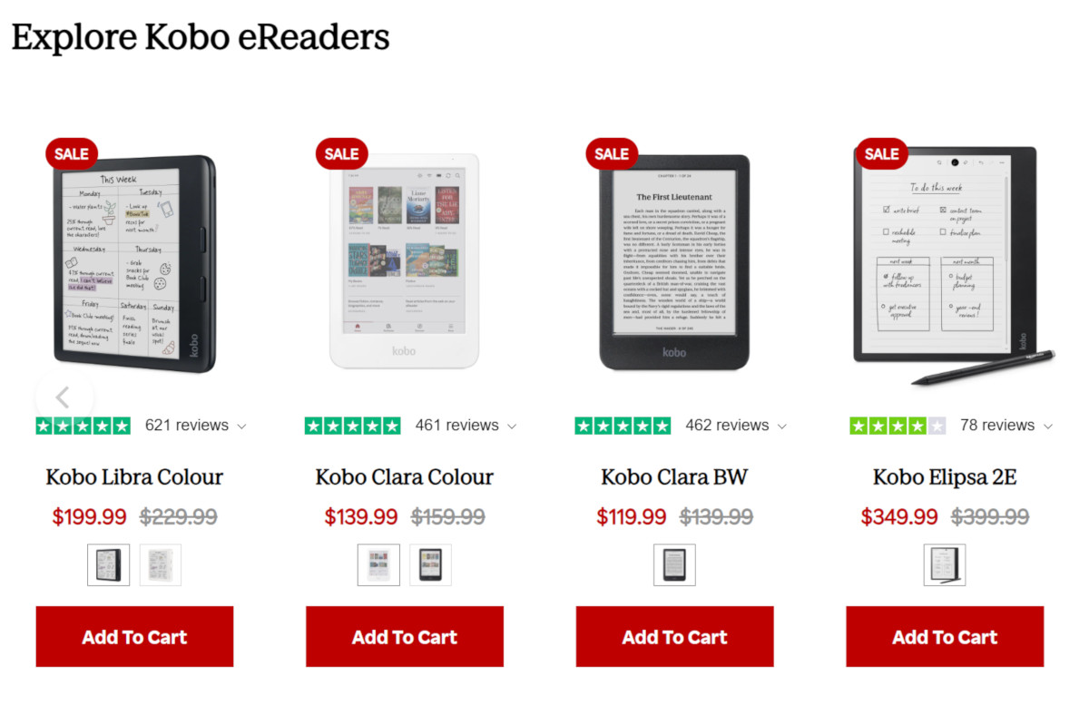 Kobo has kicked off a holiday sale on their ereaders, and unlike their Black Friday and Cyber Monday sales, all Kobo models are included this time (well, except the Kobo Sage since it was discontinued months ago, but Kobo still lists it on their website even though it can’t be purchased). The Kobo Libra Colour is $30 off again, and both Clara models are $20 off. This is the first time the white Kobo Clara Colour has been on sale since it was released. Here’s the full list of deals: Kobo Libra Colour - $199.99 ($30 off) Kobo Clara Colour (White) - $139.99 ($20 off) Kobo Clara Colour (Black) - $139.99 ($20 off) Kobo Clara BW - $119.99 ($20 off) Kobo Elipsa 2E - $349.99 ($50 off) Those are Amazon links. If any are listed as out of stock, try this Kobo ereaders page for BlueProton’s other listings. They are Kobo’s reseller in the US, and they have an annoying habit of creating multiple pages for the same products (for instance, there are three separate listings for the Libra Colour, and several more for bundles). This is kind of weird timing for a sale. Even Kobo’s own website recommends ordering by December 12th at 9AM EST for delivery by December 24th, and that time has already come and gone. Luckily shipping is faster when buying from Amazon. But why didn’t they just put the Clara models on sale for Black Friday? In related news, Kobo is now scalping their own remote page turner. The price is supposed to be $29.99-that’s what it costs on Kobo’s website- but they’re currently selling both the white and black version for $59.99 on Amazon . They’re not being sold by some shady third-party seller either; they’re being sold by Kobo US.