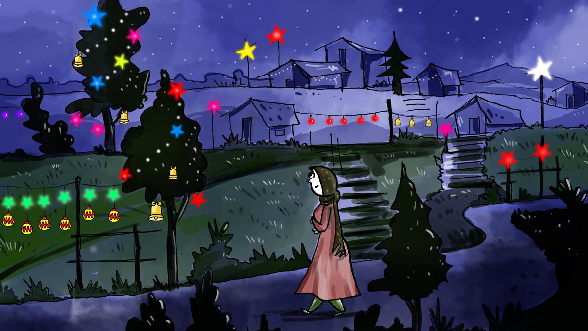 High up in the Western Ghats sat a small, cheerful village with a very long name: Thinkyoumaylikeit. Luckily, everyone who lived there did like it. In fact, a lot, actually. With misty mornings, rolling green hills, and houses as colourful as candy boxes, there was not much to complain about. Well ... except for two people. The village shop, Thingsyoumayneed, was run by a grumpy pair. Mr. and Mrs. Crosspatch. They treated a smile as though it cost a thousand rupees. They liked their customers to be quick, quiet, and exact with coins. They did not encourage talking in their shop. Not that the townspeople cared. They came in, gossiped, and sometimes even sang while they shopped. They were a happy lot, you see. Mr. Crosspatch would mutter, and Mrs. Crosspatch would sigh, but the people went about their merry way. Celebration time Every year, the moment November tiptoed out, the villagers pounced on their Christmas decorations. Yes, it was early. No, they didn’t care. Trees went up, lights twinkled everywhere, and the village glittered like it had been bathed in a box of fairy dust. Soon, the baking began. Cakes, cookies, macaroons, gingerbread, sugar cookies and peanut-butter blossoms. The smell drifted through the village and down the hill slopes, like a warm hug. It was an open invitation for the people of the plains to come up. Every evening, the children sang carols and danced around their trees. It was all very merry. Except for one house. In the corner of the village sat a dark, silent house. No tree. No lights. No wreath. No tinsel. Not even a paper star taped to a window. Its owner, Mrs. Smiles, never smiled. She bought her groceries at Thingsyoumayneed without saying a word, placed exact change on the counter, and left. The Crosspatches adored her. She was their dream customer. This year was the 75th year of their celebration. The villagers went extra-big on lights. It was said that even Santa could see the glow from the North Pole. More tourists came up the hill just to stare and say, “Ooooh!” and “Aaaah!” One evening, while walking home, twins Tara and Rhea passed Mrs. Smiles’s gloomy house. They saw her in the garden, looking longingly at everyone else’s sparkly decorations. Then she sighed - a long, heavy sigh - and went back inside. That night Tara couldn’t sleep. Mrs. Smiles’ sigh kept floating around in her head. When she peeked out of her window, she gasped. Someone was standing outside. Lonely figure Mrs. Smiles. Wrapped in a shawl, she walked slowly down the road, admiring all the lights as if she wished they belonged to her. Tara shook Rhea awake. “We have to talk to her!” “At midnight?” Rhea croaked. “Are you out of your mind?” “Maybe. But come on!” The twins tiptoed out and caught up with Mrs. Smiles near the Laughitouts’ house. The place was so decorated that it looked like Santa’s summer home. “Hello... Mrs. Smiles?” Tara whispered....