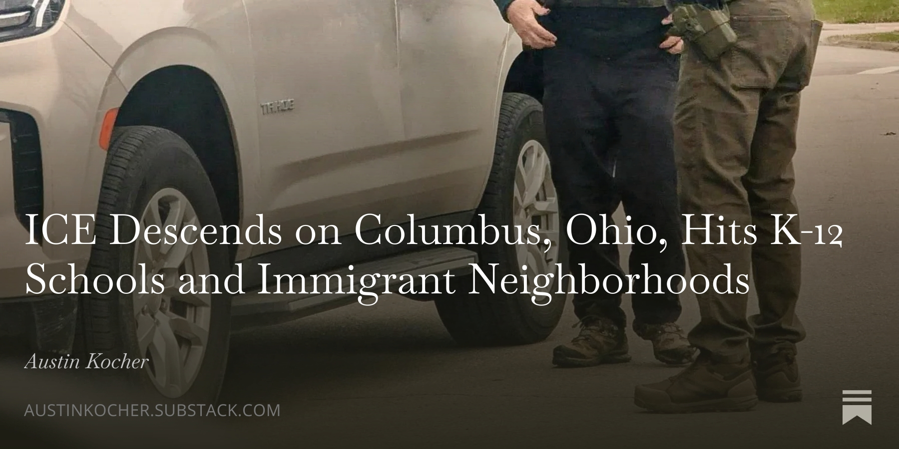 ICE Descends on Columbus, Ohio, Hits K-12 Schools and Immigrant Neighborhoods I received a disturbing text message from my sister yesterday afternoon: “ICE has been at the girls’ old school today.” The girls, my nieces, used to attend World Language Immersion School in Columbus, Ohio, where they both studied French and developed rich relationships with the teachers and students. The school is situated in a quiet, residential neighborhood where kids often walk after school to the nearby shops in Clintonville to get ice cream or play board games. ICE broke the peace yesterday. Local parents and community members say that ICE showed up at the school’s release time, likely targeting the large Latino/Hispanic population the school attracts. Neighbors and concerned parents-including my sister-showed up to make sure that students, most of whom are 11 to 14 years old, were able to get picked up and board their buses without being harassed. ICE’s arrival in my hometown of Columbus follows a geographic pattern of concentrated enforcement in cities for a few days or weeks, and then moving on to the next town like roving bandits, more intent on instilling fear and sowing confusion rather than establishing law and order. Los Angeles. Chicago. Charlotte. Columbus. Your city could be next. I spent most of 2013 to 2019 learning about the grassroots immigrant rights movement in the state and eventually playing a small role in creating the infrastructure and local policies that were intended to support the often ignored new American population in the city. ICE raids took place then, but they were rarer and more focused on organized crime, not nabbing people off the street outside middle schools and Home Depots. My nieces’ former middle school wasn’t the only school ICE reportedly targeted. ICE was at or near Horizon Primary School, Dublin City Schools, and Scioto High School, as well as several other locations such as the immigrant neighborhoods and grocery stores across the city. As I wrote last week, Columbus is also home to a large Somali-American community that Trump cruelly disparaged . These sightings all need to be verified through ground-truthing, but the precise locations are of secondary importance to the primary issue: the disruption caused for people living in the city who are legitimately worried about what ICE is doing, whether they are following the law, and who is being affected. A loud, online, and radicalized minority of the country is undoubtedly gleeful over ICE’s arrest-bombing of various cities. But a growing number of Americans are having a hard time squaring the Trump administration’s claims online that they are going after the “worst of the worst” with the reality that ICE is circling schools and shopping centers to look for people who’s only observable immigration infraction is that they aren’t white. City officials spoke out about immigration enforcement. Shannon Harding, president of Columbus City Council, wrote on Facebook that the city is not participating in, or helping with, ICE’s enforcement activity-but also said they can’t stop them, either. Harding...