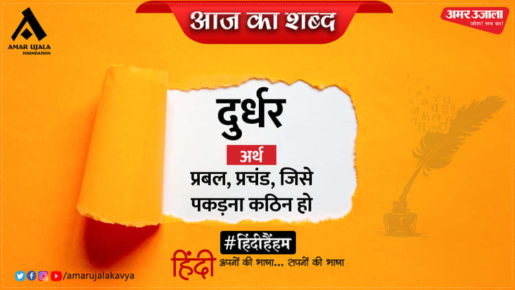 'рд╣рд┐рдВрджреА рд╣реИрдВ рд╣рдо' рд╢рдмреНрдж рд╢реГрдВрдЦрд▓рд╛ рдореЗрдВ рдЖрдЬ рдХрд╛ рд╢рдмреНрдж рд╣реИ- рджреБрд░реНрдзрд░, рдЬрд┐рд╕рдХрд╛ рдЕрд░реНрде рд╣реИ- рдкреНрд░рдмрд▓, рдкреНрд░рдЪрдВрдб, рдЬрд┐рд╕реЗ рдкрдХрдбрд╝рдирд╛ рдХрдард┐рди рд╣реЛред рдкреНрд░рд╕реНрддреБрдд рд╣реИ рдХреЗрджрд╛рд░рдирд╛рде рдЕрдЧреНрд░рд╡рд╛рд▓ рдХреА рдХрд╡рд┐рддрд╛- рдЦрдЬреБрд░рд╛рд╣реЛ рдХреЗ рдордиреНрджрд┐рд░ рдЪрдВрджреЗрд▓реЛрдВ рдХреА рдХрд▓рд╛-рдкреНрд░реЗрдо рдХреА рджреЗрди-- рджреЗрд╡рддрд╛рдУрдВ рдХреЗ рдордиреНрджрд┐рд░ рдмрдиреЗ рд╣реБрдП рд╣реИрдВ рдЕрдм рднреА рдЕрдирд┐рдВрджреНрдп рдЬреЛ рдЦрдбрд╝реЗ рд╣реБрдП рд╣реИрдВ рдЦрдЬреБрд░рд╛рд╣реЛ рдореЗрдВ, рдпрд╛рдж рджрд┐рд▓рд╛рддреЗ рд╣реИрдВ рд╣рдо рдХреЛ рдЙрд╕ рдЧрдП рд╕рдордп рдХреА рдЬрдм рдкреБрд░реБрд╖реЛрдВ рдиреЗ рдЙрдордбрд╝-рдЙрдордбрд╝ рдХрд░-- рд░реЛрдорд╛рдВрдЪрд┐рдд рд╣реЛрдХрд░ рд╕рдореБрджреНрд░-рд╕рд╛, рдХреБрдЪ-рдХрдЯрд╛рдХреНрд╖ рд╡реИрднрд╡-рд╡рд┐рд▓рд╛рд╕ рдХреА рдХрд▓рд╛-рдХреЗрд▓рд┐ рдХреА рдХрд╛рдорд┐рдирд┐рдпреЛрдВ рдХреЛ рдмрд╛рд╣реБ-рдкрд╛рд╢ рдореЗрдВ рдмрд╛рдВрдз рд▓рд┐рдпрд╛ рдерд╛, рдФрд░ рднреЛрдЧ-рд╕рдореНрднреЛрдЧ-рд╕реБрд░рд╛ рдХрд╛ рд╕рд░рд╕ рдкрд╛рди рдХрд░, рджреЗрд╢-рдХрд╛рд▓ рдХреЛ, рдЬрд░рд╛-рдорд░рдг рдХреЛ рднреБрд▓рд╛ рджрд┐рдпрд╛ рдерд╛ ред рдЪрд▓реЗ рдЧрдП рд╡реЗ рдХрд╛рдордХрдгреНрда-рдЖрднрд░рдг рдкреБрд░реБрд╖-рдЬрди; рдЪрд▓реА рдЧрдИрдВ рд╡реЗ рд░реВрдк-рджреАрдк-рджреАрдкрд┐рдд-рдмрд╛рд▓рд╛рдПрдБ; рд▓реЛрдк рд╣реБрдИ рд╡реЗ рдорджрди-рдорд╣реЛрддреНрд╕рд╡ рдХреА рд▓реАрд▓рд╛рдПрдБ; рд╢реЗрд╖ рдирд╣реАрдВ рд░рд╣ рдЧрдИрдВ рд╣реГрджрдп рдХреА рд╡реЗ рд╕реНрд╡рд░-рдзреНрд╡рдирд┐рдпрд╛рдБ ! рдХрд┐рдиреНрддреБ рдореВрд░реНрддрд┐рдпрд╛рдБ рдкреБрд░реБрд╖-рдЬрдиреЛрдВ рдХреА рдФрд░ рдореВрд░реНрддрд┐рдпрд╛рдБ рдХрд╛рдорд┐рдирд┐рдпреЛрдВ рдХреА рдЬреНрдпреЛрдВ рдХреА рддреНрдпреЛрдВ рдирд┐рд╕реНрдкрдиреНрдж рдЦрдбрд╝реА рд╣реИрдВ рдЙрд╕реА рддрд░рд╣ рд╕реЗ рджреЗрд╡-рдордиреНрджрд┐рд░реЛрдВ рдХреА рджреАрд╡рд╛рд░реЛрдВ рдкрд░ рд╡рд┐рд▓рд╛рд╕ рдХреЗ рд╣рд╛рд╡-рднрд╛рд╡ рд╕реЗ ред рдХрд╛рд▓ рдирд╣реАрдВ рдХрд░ рд╕рдХрд╛ рдЙрдиреНрд╣реЗрдВ рдЦрдгреНрдбрд┐рдд рдХреГрдкрд╛рдг рд╕реЗ рдХрд┐рдиреНрддреБ рдХрд┐рд╕реА рджреБрд░реНрдзрд░ рдордиреБрд╖реНрдп рдиреЗ рдЧрджрд╛ рдорд╛рд░ рдХрд░ рдХрд╣реАрдВ-рдХрд╣реАрдВ рдкрд░ рддрдирд┐рдХ-рддрдирд┐рдХ-рд╕рд╛ рддреЛрдбрд╝ рджрд┐рдпрд╛ рд╣реИ; рдФрд░ рдЖрдЬ рддрдХ рдЗрд╕реАрд▓рд┐рдП рд╡реЗ рдЙрд╕реЗ рдХреЛрд╕рддреА рд╣реИрдВ рдХреНрд╖рдг-рдкреНрд░рддрд┐рдХреНрд╖рдг ред рдирд░ рд╣реИрдВ рддреЛ рдЖрдЬрд╛рдиреБ-рдмрд╛рд╣реБ рдЙрдиреНрдирдд рд▓рд▓рд╛рдЯ-- рд░рд╛рдЧрд╛рдиреБрд░рд╛рдЧ-рд░рдВрдЬрд┐рдд рд╢рд░реАрд░ рд╣реИрдВ, рдЕрдзрд░-рдкрд╛рди, рдХреБрдЪ-рдЧреНрд░рд╣рдг, рдФрд░ рдЖрд▓рд┐рдВрдЧрди рдореЗрдВ рдЖрд╕рдХреНрдд рд▓реАрди рд╣реИрдВред рддрд┐рдп рд╣реИрдВ рддреЛ рдЖрдХреБрд▓рд┐рдд рдХреЗрд╢-рдкрдЯ-рдирджреА-рд╡реЗрд╢, рдХрд╛рдорд╛рддреБрд░-рдордж рд╡рд┐рд╣реНрд╡рд▓ рдЕрдзреАрд░ рд╣реИрдВ, рд╕рджрд┐рдпреЛрдВ рд╕реЗ рдкреБрд░реБрд╖реЛрдВ рдХреА рдЬрд╛рдВрдШреЛрдВ рдкрд░ рдмреИрдареА рдХрд░рд