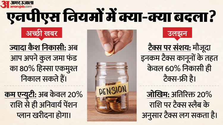 NPS: рд░рд┐рдЯрд╛рдпрд░рдореЗрдВрдЯ рдлрдВрдб рдкрд░ рд╕рд░рдХрд╛рд░ рджреЗрдЧреА рдкреВрд░реА рдЯреИрдХреНрд╕ рдЫреВрдЯ рдпрд╛ рджреЗрдирд╛ рд╣реЛрдЧрд╛ рдЬреБрд░реНрдорд╛рдирд╛? рдХреНрдпрд╛ рд╣реИ PFRDA рдХреЗ рдирдП рдирд┐рдпрдо рдХрд╛ рдкреВрд░рд╛ рдЧрдгрд┐рдд рдирд╡рд┐рддрд╛ рд╕реНрд╡рд░реВрдк Updated Mon, 22 Dec 2025 07:40 PM IST NPS Withdrawal Rules 2025: рдЕрдм рд░рд┐рдЯрд╛рдпрд░рдореЗрдВрдЯ рдкрд░ рдирд┐рдХрд╛рд▓ рд╕рдХреЗрдВрдЧреЗ 80% рдлрдВрдб, рд▓реЗрдХрд┐рди рдХреНрдпрд╛ рдЕрддрд┐рд░рд┐рдХреНрдд рд░рд╛рд╢рд┐ рдкрд░ рд▓рдЧреЗрдЧрд╛ рдЯреИрдХреНрд╕? рдЬрд╛рдирд┐рдП PFRDA рдХреЗ рдирдП 80:20 рдирд┐рдпрдо рдФрд░ рдЖрдкрдХреА рдЬреЗрдм рдкрд░ рдЗрд╕рдХрд╛ рдЕрд╕рд░ред рд╡рд┐рд╕реНрддрд╛рд░ рдиреЗрд╢рдирд▓ рдкреЗрдВрд╢рди рд╕рд┐рд╕реНрдЯрдо рдпрд╛рдиреА рдПрдирдкреАрдПрд╕ рдХреЗ рд╕рдмреНрд╕рдХреНрд░рд╛рдЗрдмрд░реНрд╕ рдХреЗ рд▓рд┐рдП рдПрдХ рдмрдбрд╝реА рдЦреБрд╢рдЦрдмрд░реА рдФрд░ рдПрдХ рдмрдбрд╝реА рдЙрд▓рдЭрди рджреЛрдиреЛрдВ рд╕рд╛рде-рд╕рд╛рде рдЖрдИ рд╣реИрдВред рдкреЗрдВрд╢рди рдлрдВрдб рдирд┐рдпрд╛рдордХ рдФрд░ рд╡рд┐рдХрд╛рд╕ рдкреНрд░рд╛рдзрд┐рдХрд░рдг (PFRDA) рдиреЗ рдирд┐рдпрдореЛрдВ рдореЗрдВ рдмрдбрд╝рд╛ рдмрджрд▓рд╛рд╡ рдХрд░рддреЗ рд╣реБрдП рдЧреИрд░-рд╕рд░рдХрд╛рд░реА рдХрд░реНрдордЪрд╛рд░рд┐рдпреЛрдВ рдХреЛ рд░рд┐рдЯрд╛рдпрд░рдореЗрдВрдЯ рдХреЗ рд╕рдордп рдЙрдирдХреЗ рдХреБрд▓ рдЬрдорд╛ рдХреЛрд╖ рдХрд╛ 80 рдкреНрд░рддрд┐рд╢рдд рд╣рд┐рд╕реНрд╕рд╛ рдПрдХрдореБрд╢реНрдд рдирд┐рдХрд╛рд▓рдиреЗ рдХреА рдЕрдиреБрдорддрд┐ рджреЗ рджреА рд╣реИред рдЕрдм рддрдХ рдпрд╣ рд╕реАрдорд╛ рдХреЗрд╡рд▓ 60 рдкреНрд░рддрд┐рд╢рдд рдереАред рдирдП рдмрджрд▓рд╛рд╡реЛрдВ рдХреЗ рддрд╣рдд рдиреЙрди-рдЧрд╡рд░реНрдирдореЗрдВрдЯ (рдкреНрд░рд╛рдЗрд╡реЗрдЯ) рд╕рдмреНрд╕рдХреНрд░рд╛рдЗрдмрд░реНрд╕ рдХреЗ рд▓рд┐рдП рдкрд╛рдВрдЪ рд╕рд╛рд▓ рдХреА рд▓реЙрдХ-рдЗрди рдХреЛ рдЦрддреНрдо рдХрд░ рджрд┐рдпрд╛ рдЧрдпрд╛ рд╣реИред рдПрдХрдореБрд╢реНрдд рдирд┐рдХрд╛рд╕реА рдХреА рд░рд╛рд╢рд┐ рднреА рдмрдврд╝рд╛ рджреА рдЧрдИ рд╣реИред рдкреЗрдВрд╢рди рдлрдВрдб рд░реЗрдЧреБрд▓реЗрдЯрд░реА рдПрдВрдб рдбреЗрд╡рд▓рдкрдореЗрдВрдЯ рдЕрдереЙрд░рд┐рдЯреА (PFRDA) рдиреЗ PFRDA (рдПрдХреНрдЬрд┐рдЯреНрд╕ рдПрдВрдб рд╡рд┐рджрдбреНрд░реЙрд▓реНрд╕ рдЕрдВрдбрд░ рдж рдиреЗрд╢рдирд▓ рдкреЗрдВрд╢рди рд╕рд┐рд╕реНрдЯрдо) рдЕрдореЗрдВрдбрдореЗрдВрдЯ рд░реЗрдЧреБрд▓реЗрд╢рдВрд╕ 2025 рдХреЛ рдиреЛрдЯрд┐рдлрд╛рдИ рдХрд░ рджрд┐рдпрд╛ рд╣реИред рдЗрд╕ рдирдП рдирд┐рдпрдо рд╕реЗ рд▓рд┐рдХреНрд╡рд┐рдбрд┐рдЯреА (рдирдХрдж рдкреНрд░рд╡рд╛рд╣) рддреЛ рдмрдврд╝реЗрдЧреА, рд▓реЗрдХрд┐рди рдкреЗрдВрдЪ рдЖрдпрдХрд░ рдкрд░ рдлрдВрд╕рд╛ рд╣реИред рдореМрдЬреВрджрд╛ рдЗрдирдХрдо рдЯреИрдХреНрд╕ рдХрд╛рдиреВрди рдХреЗрд╡рд▓ 60 рдкреНрд░рддрд┐рд╢рдд рдирд┐рдХрд╛рд╕реА рдХреЛ рд╣реА рдЯреИрдХреНрд╕-рдлреНрд░реА рдорд╛рдирддрд╛ рд╣реИред рдРрд╕реЗ рдореЗрдВ рд╕рд╡рд╛рд▓ рдЙрдарддрд╛ рд╣реИ- рдХреНрдпрд╛ рдЕрддрд┐рд░рд┐рдХреНрдд 20 рдкреНрд░рддрд┐рд╢рдд рдирд┐рдХрд╛рд╕реА рдкрд░ рдЖрдкрдХреЛ рдЯреИрдХреНрд╕ рджреЗрдирд╛ рд╣реЛрдЧрд╛? рдЖрдЗрдП рдЗрд╕ рд╡рд┐рд╖рдп рд╕реЗ рдЬреБрдбрд╝реЗ рд╕рд╡рд╛рд▓реЛрдВ рдХрд╛ рдЕрд╕рд╛рди рднрд╛р